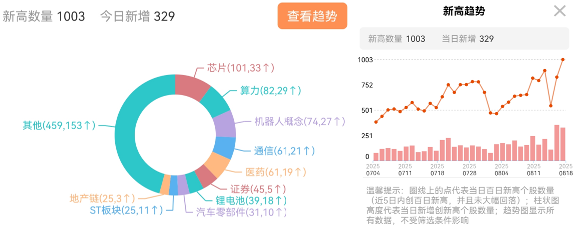 从百日新高,判断板块轮动节奏还是比较准的,昨日的百日新高数据继续新高,目前是在芯片(自主可控)>算力>机器人>通信,医药跟军工掉队明显,大科技全面占据C位