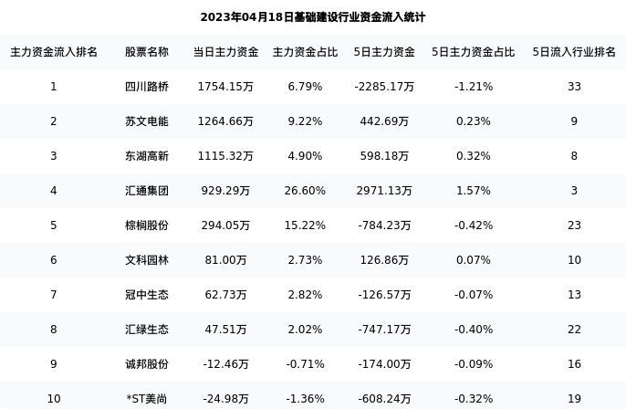 从主力资金流向来看,基础建设行业今日主力资金流入49.11亿元,在所有申万二级行业中排名:45/131。