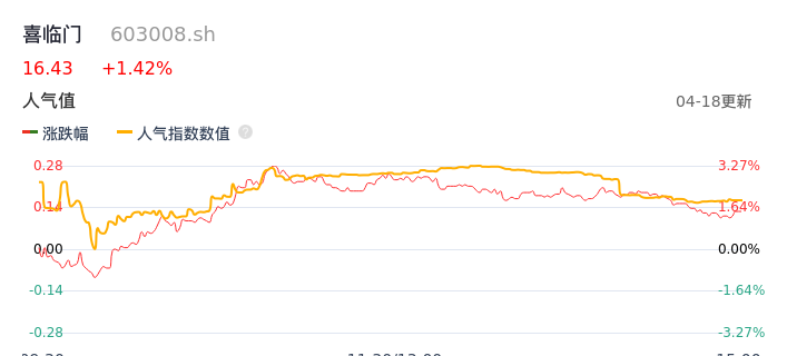 04月18日,喜临门收报16.43,股价涨幅1.42%,成交金额4916.22万元,换手率0.79%。
