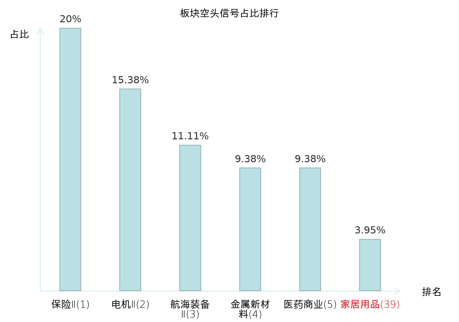全市场所有行业板块中主力空头信号占比排名中,保险Ⅱ板块位居第一。塑料板块名次提升最快,较昨日上升111位。