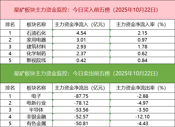 从主力板块资金监控数据来看,石油化工板块主力资金净流入居首。
