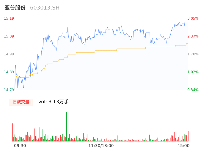 04月24日,亚普股份收报15.19,股价涨幅3.05%,成交金额4709.31万元,换手率0.61%。
