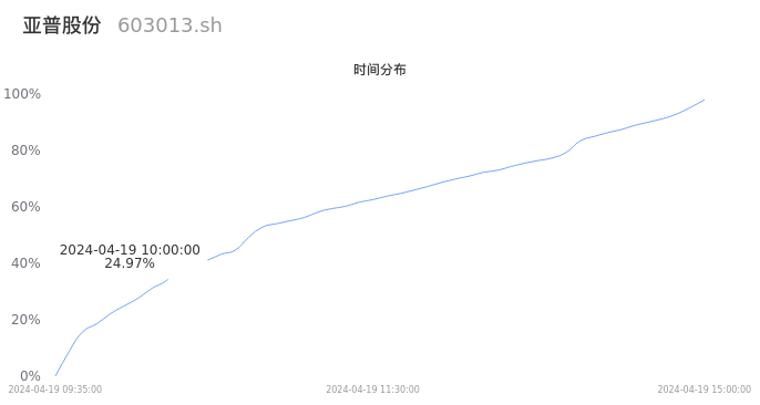 603013亚普股份2024年04月19日成交4.25万手,成交金额6348.56万元,相较昨日缩量4990手,换手率0.83%,成交清淡。