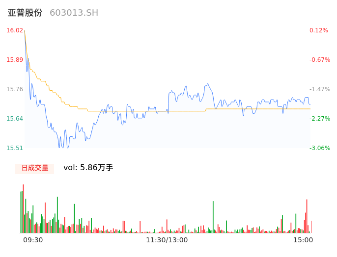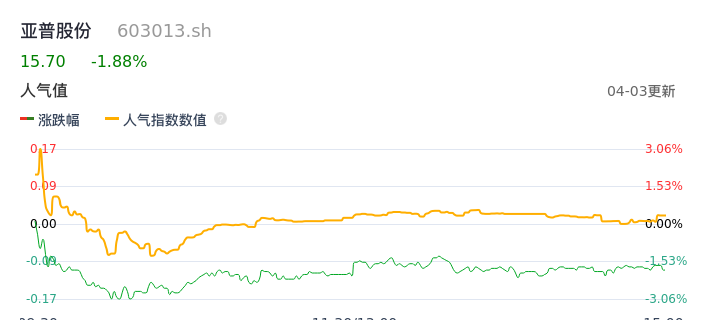 04月03日,亚普股份收报15.70,股价涨幅-1.88%,成交金额9185.66万元,换手率1.14%。
