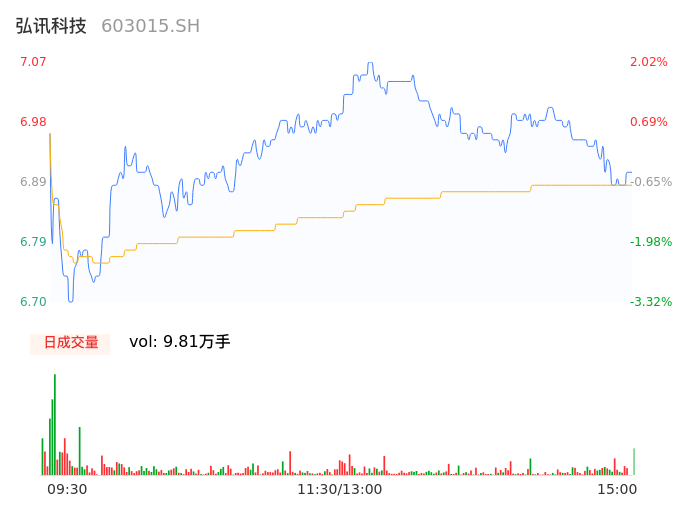 04月18日,弘讯科技收报6.88,股价涨幅-0.72%,成交金额6762.65万元,换手率2.43%。