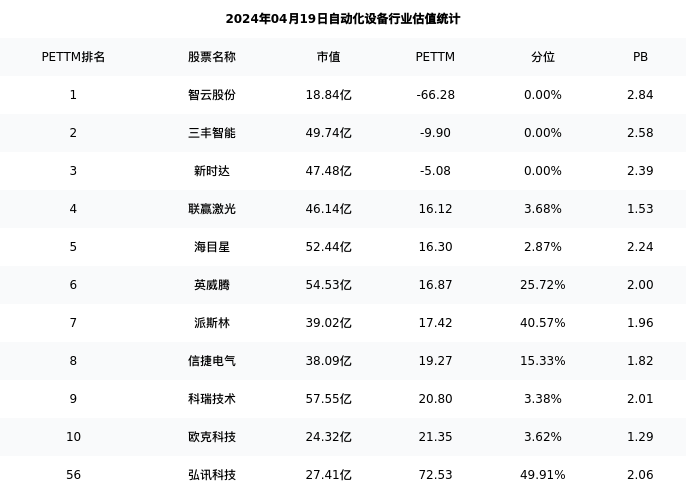 从估值角度看:弘讯科技最新市盈率PETTM为72.53,在行业内排名54/80,处于49.91分位。