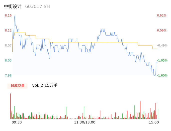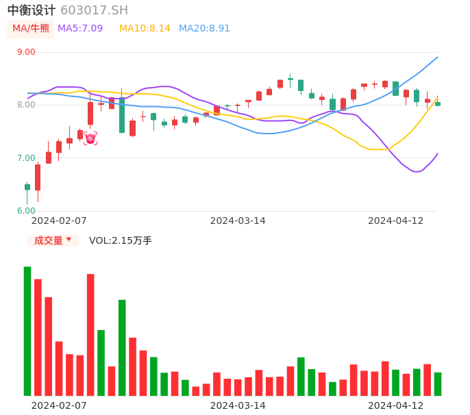04月12日,中衡设计收报7.99,股价涨幅-1.48%,成交金额1734.21万元,换手率0.78%。