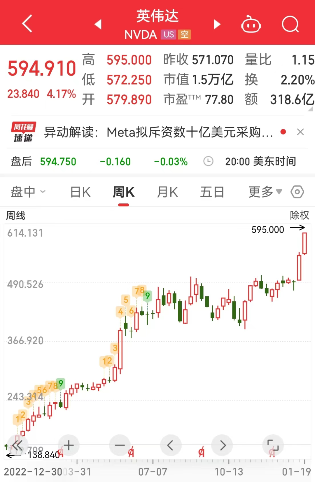 美股英伟达市值逼近1.5万亿美元