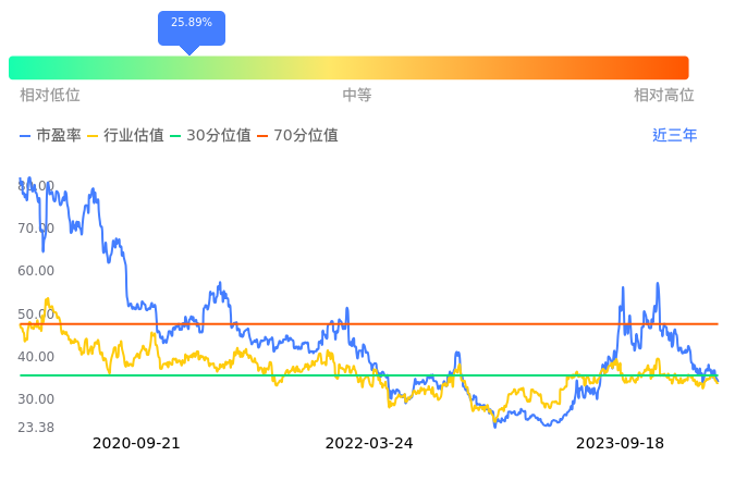 2023年09月19日,中科曙光下跌1.66%收于36.78,今日成交金额8.84亿元。下文将从市盈率PETTM、市净率PB、市现率3个角度去分析公司估值情况。