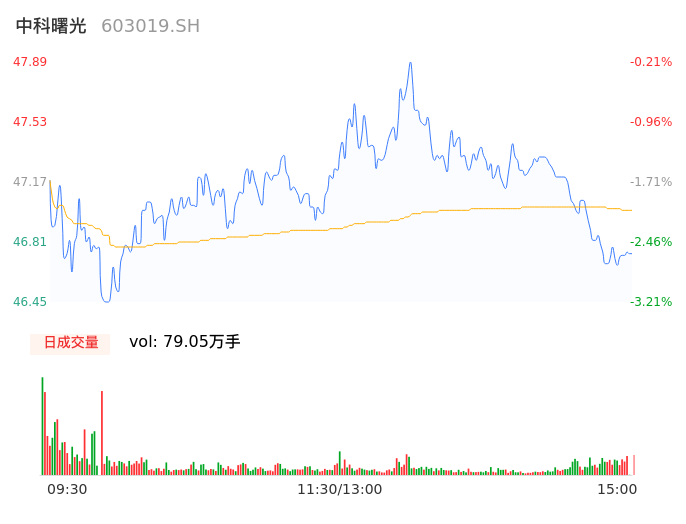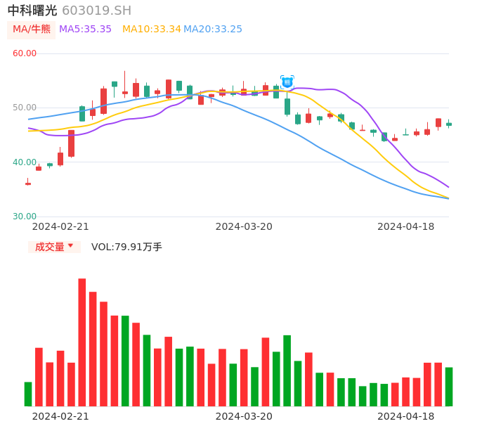 04月18日,中科曙光收报46.75,股价涨幅-2.58%,成交金额37.55亿元,换手率5.49%。