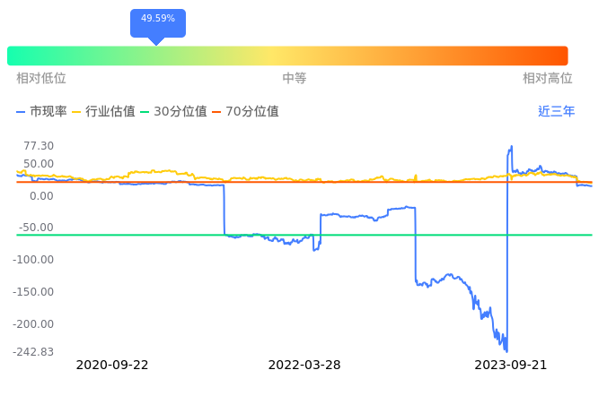 2023年09月21日,中科曙光上涨0.87%收于37.22,今日成交金额12.16亿元。下文将从市盈率PETTM、市净率PB、市现率3个角度去分析公司估值情况。