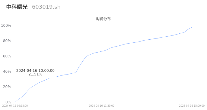 603019中科曙光2024年04月16日成交89.45万手,成交金额41.33亿元,相较昨日放量31.19万手,换手率6.15%,成交清淡。