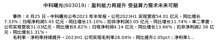 值得注意的是:2023年09月首创证券的翟炜/傅梦欣分析师,首次发布关于中科曙光的研究报告,标题为:中科曙光(603019):盈利能力再提升 受益算力需求未来可期。