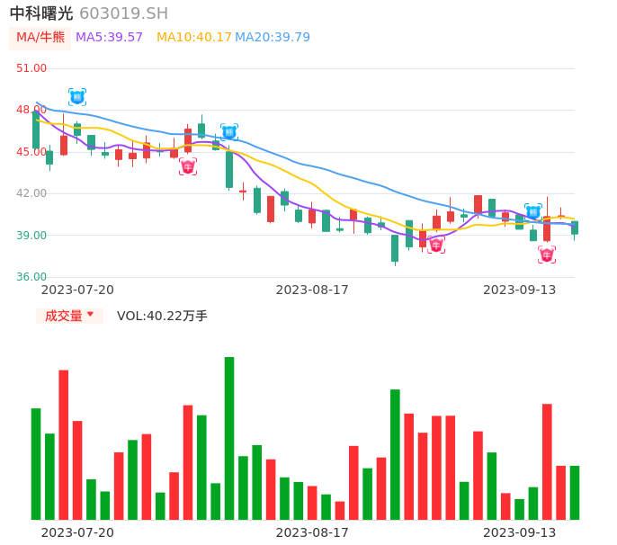 09月13日,中科曙光收报39.09,股价涨幅-3.24%,成交金额15.74亿元,换手率2.77%。