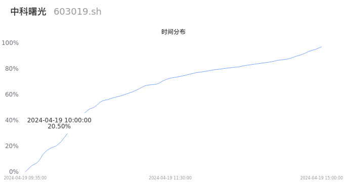 603019中科曙光2024年04月19日成交76.96万手,成交金额34.77亿元,相较昨日缩量2.94万手,换手率5.29%,成交清淡。