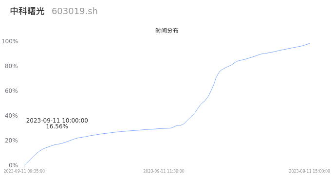 603019中科曙光2023年09月11日成交63.34万手,成交金额25.36亿元,相较昨日放量31.12万手,换手率4.35%,成交清淡。