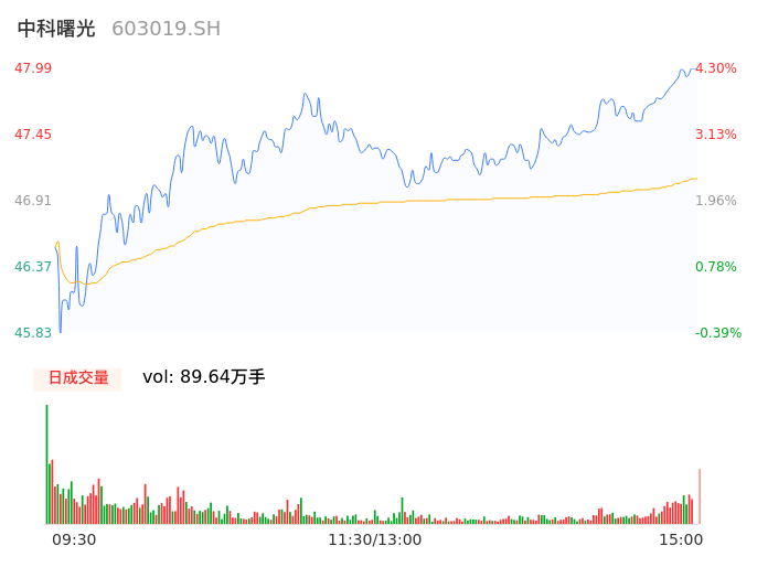 04月17日,中科曙光收报47.99,股价涨幅4.30%,成交金额42.22亿元,换手率6.16%。