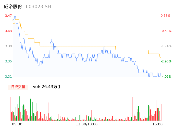 04月12日,威帝股份收报3.32,股价涨幅-3.77%,成交金额8888.59万元,换手率4.70%。