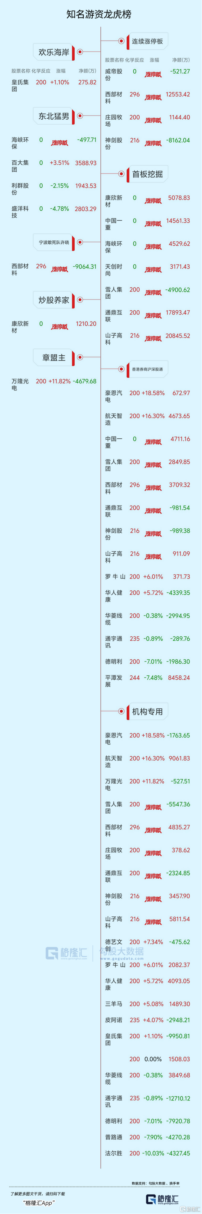 龙虎榜单日净买入额前三为平潭发展、山子高科、创源股份,分别为2.63亿、2.08亿、1.98亿。