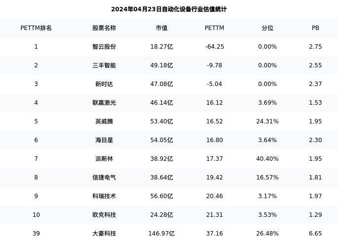 从估值角度看:大豪科技最新市盈率PETTM为37.16,在行业内排名36/80,处于26.48分位。