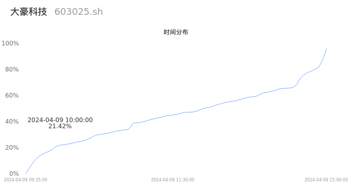 603025大豪科技2024年04月09日成交4.46万手,成交金额4823.92万元,相较昨日放量9856手,换手率0.40%,成交清淡。