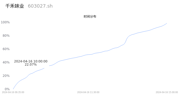 603027千禾味业2024年04月16日成交10.92万手,成交金额1.81亿元,相较昨日放量8448手,换手率1.14%,成交清淡。
