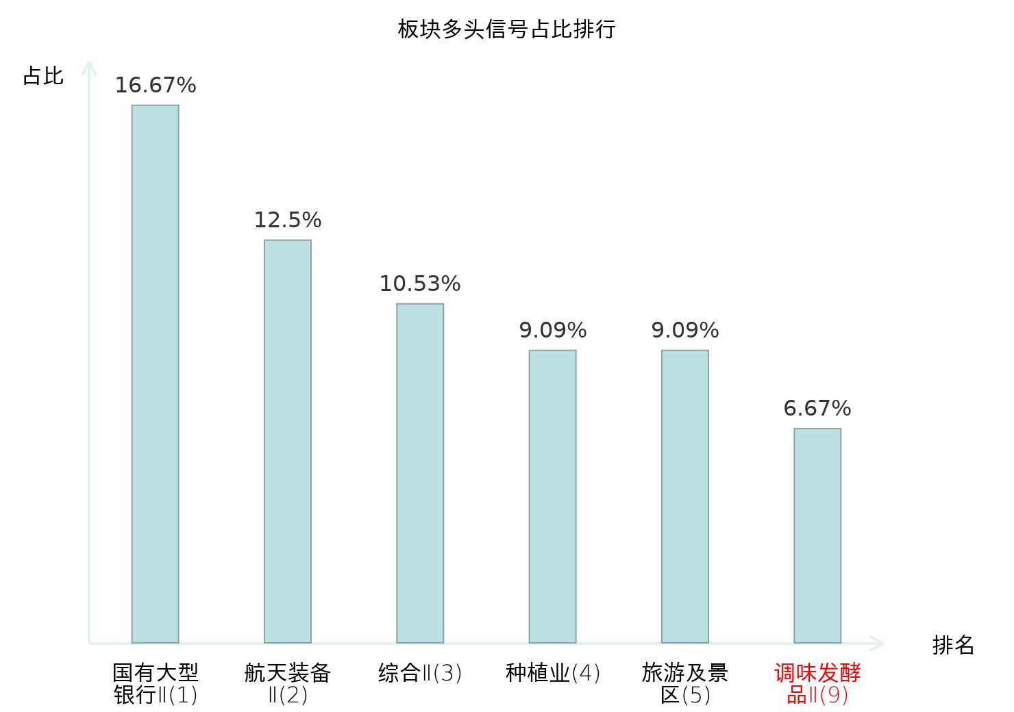 全市场所有行业板块中主力多头信号占比排名中,国有大型银行Ⅱ板块位居第一。国有大型银行Ⅱ板块名次提升最快,较昨日上升123位。