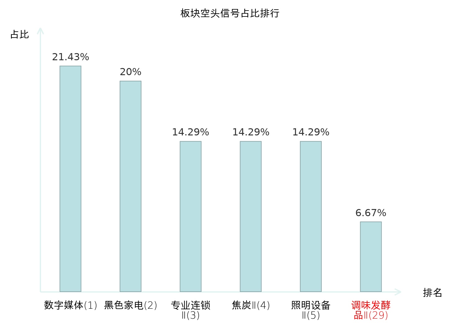全市场所有行业板块中主力空头信号占比排名中,数字媒体板块位居第一。装修装饰Ⅱ板块名次提升最快,较昨日上升110位。
