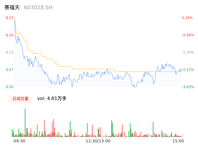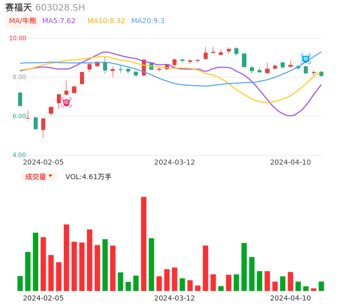04月10日,赛福天收报8.08,股价涨幅-2.06%,成交金额3716.26万元,换手率1.61%。