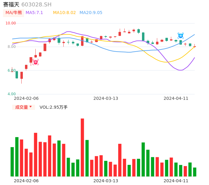 04月11日,赛福天收报8.04,股价涨幅-0.50%,成交金额2389.67万元,换手率1.03%。