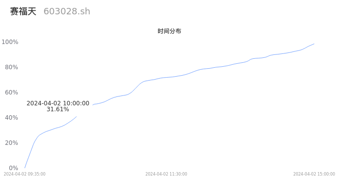 根据成交分布分析,该股票当天放量成交,成交清淡。时间上看,早盘前半小时成交量占据当天总成交量的31.61%;价格上看,成交呈现中间峰。成交分布分析主要研究股票成交的分布特性,不具有预测功能,请知悉。