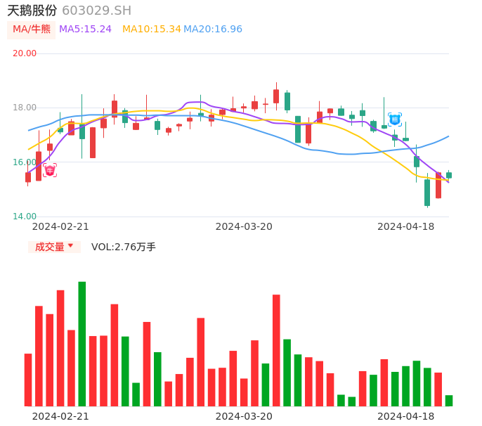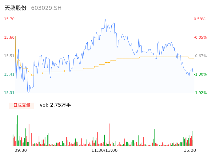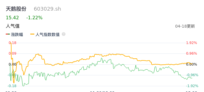 04月18日,天鹅股份收报15.42,股价涨幅-1.22%,成交金额4272.09万元,换手率2.27%。