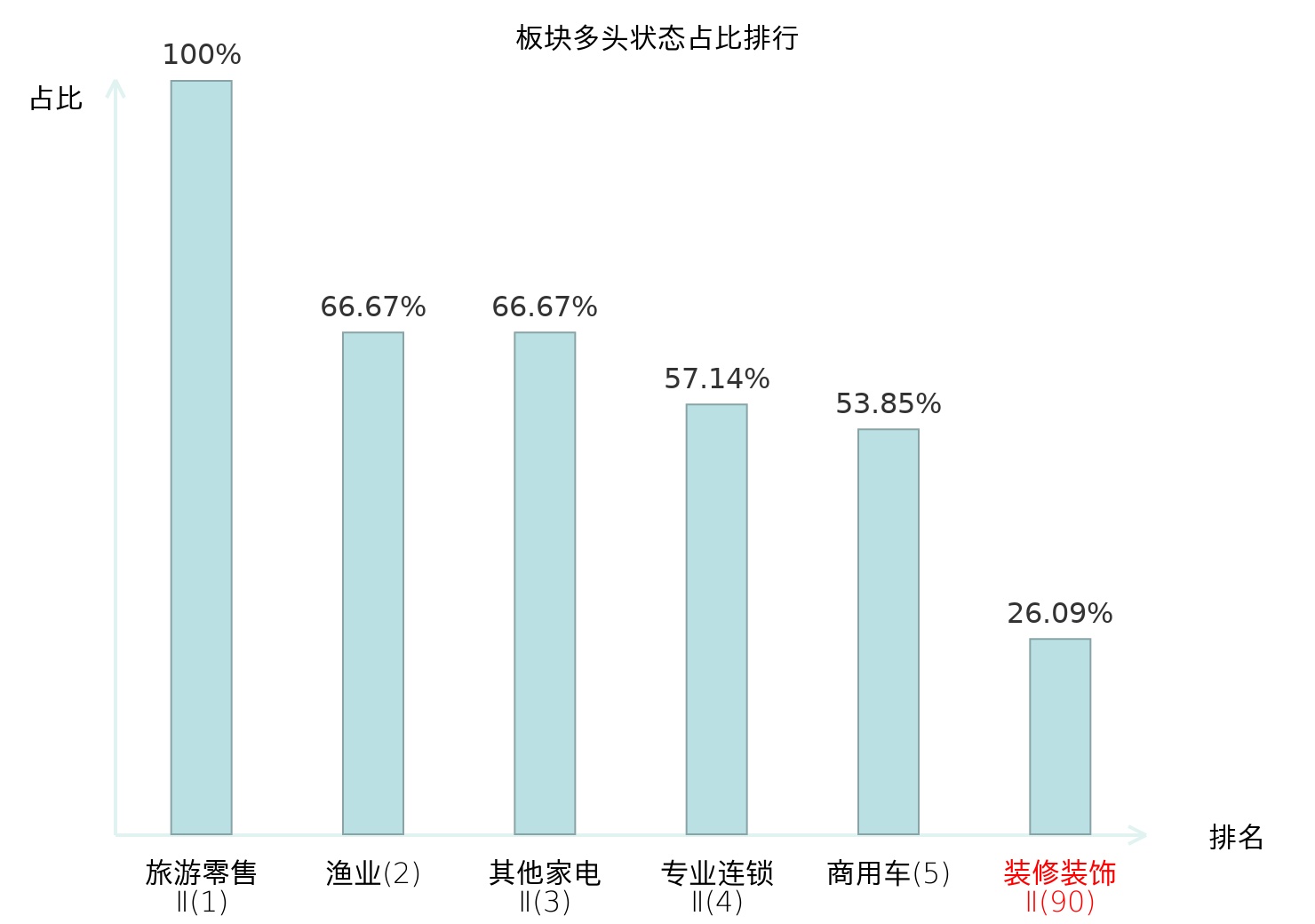 全市场所有行业板块中主力多头状态占比排名中,旅游零售Ⅱ板块位居第一。农产品加工板块名次提升最快,较昨日上升46位。