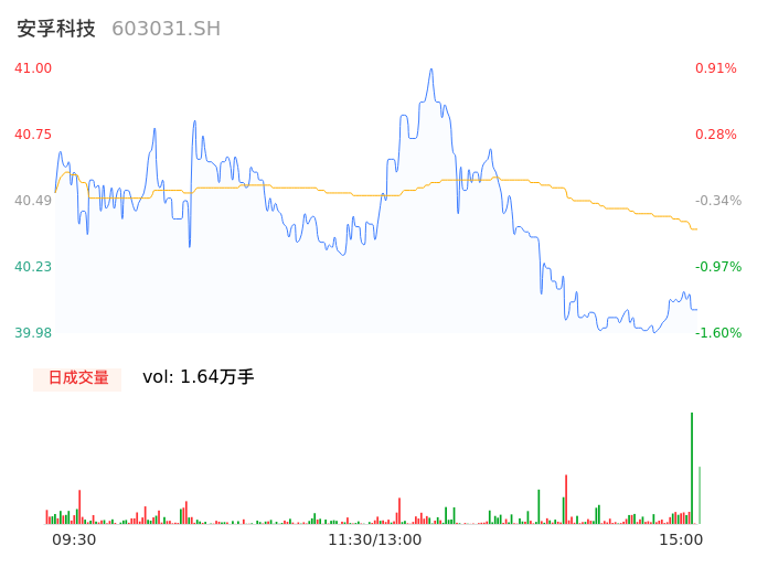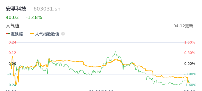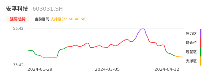 04月12日,安孚科技收报40.03,股价涨幅-1.48%,成交金额6630.11万元,换手率1.47%。
