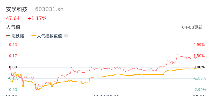 04月03日,安孚科技收报47.64,股价涨幅1.17%,成交金额1.40亿元,换手率2.67%。