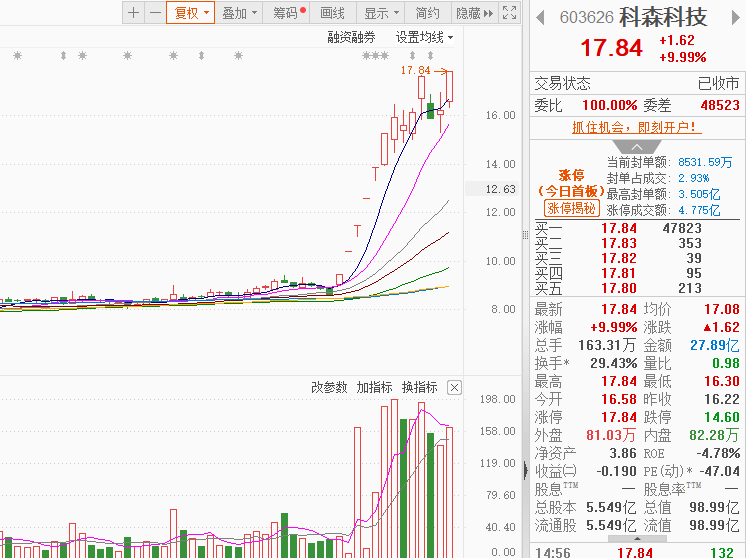 市场情绪:个股跌多涨少,全市场超4000家个股下跌。今日共44股涨停,连板股总数13只,40股封板未遂,封板率为52%(不含ST股、退市股)。焦点股方面,天普股份一字涨停晋级8连板;机器人概念股午后逆势走强,科森科技13天7板,凯迪股份10天5板;业绩超预期的低价股兆新股份4连板。