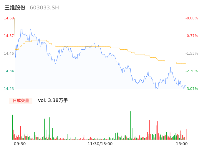 04月10日,三维股份收报14.25,股价涨幅-2.93%,成交金额4856.22万元,换手率0.33%。