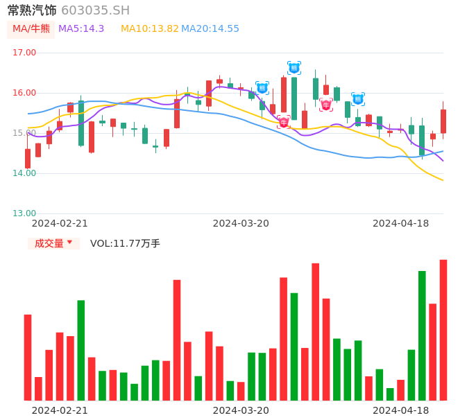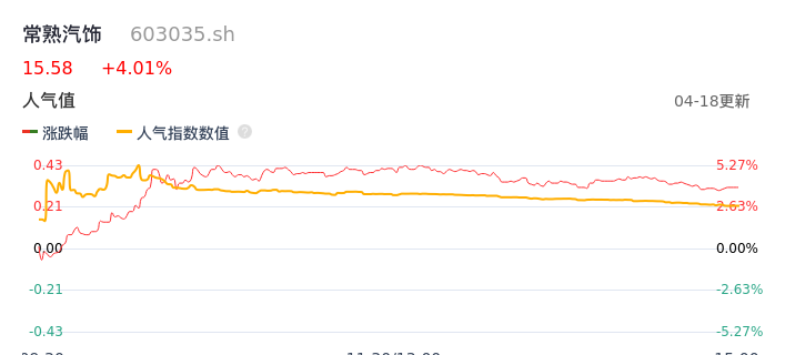 04月18日,常熟汽饰收报15.58,股价涨幅4.01%,成交金额1.83亿元,换手率3.10%。