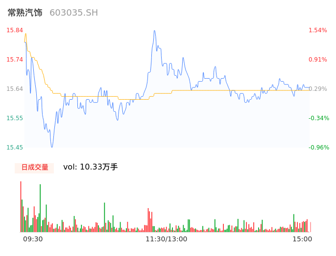 04月29日,常熟汽饰收报15.66,股价涨幅0.38%,成交金额1.62亿元,换手率2.72%。
