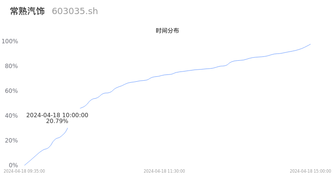603035常熟汽饰2024年04月18日成交11.77万手,成交金额1.83亿元,相较昨日放量3.05万手,换手率3.10%,成交清淡。