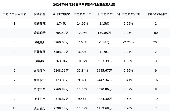 从主力资金流向来看,汽车零部件行业今日主力资金流入118.16亿元,在所有申万二级行业中排名:69/131。