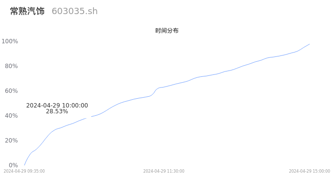 603035常熟汽饰2024年04月29日成交10.33万手,成交金额1.62亿元,相较昨日放量3.38万手,换手率2.72%,成交清淡。