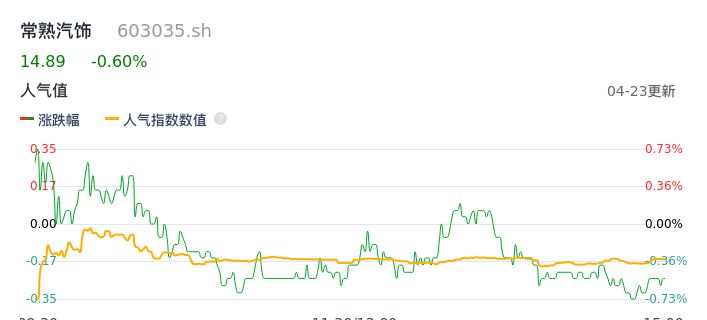 04月23日,常熟汽饰收报14.89,股价涨幅-0.60%,成交金额5256.36万元,换手率0.93%。