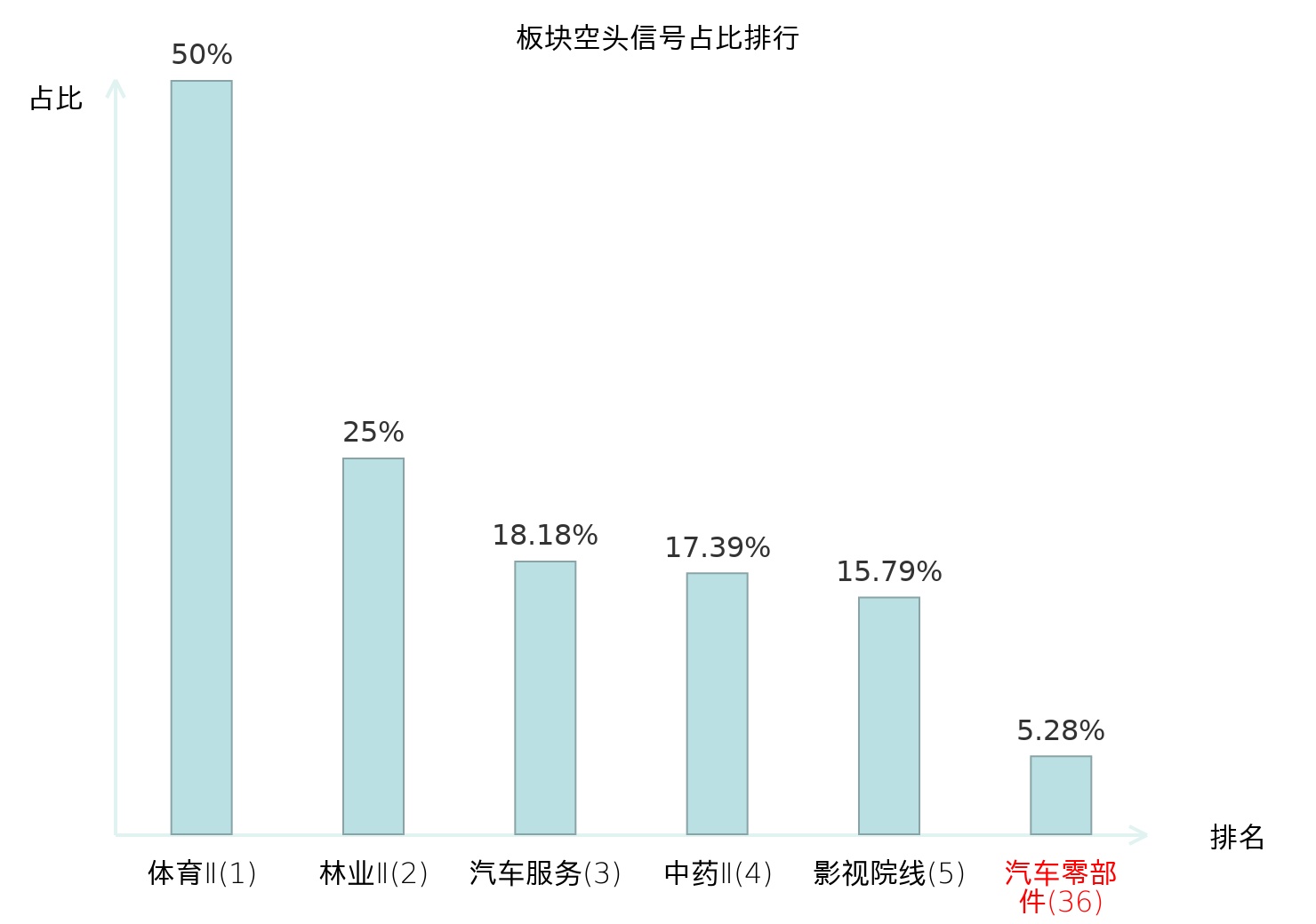 全市场所有行业板块中主力空头信号占比排名中,体育Ⅱ板块位居第一。文娱用品板块名次提升最快,较昨日上升101位。