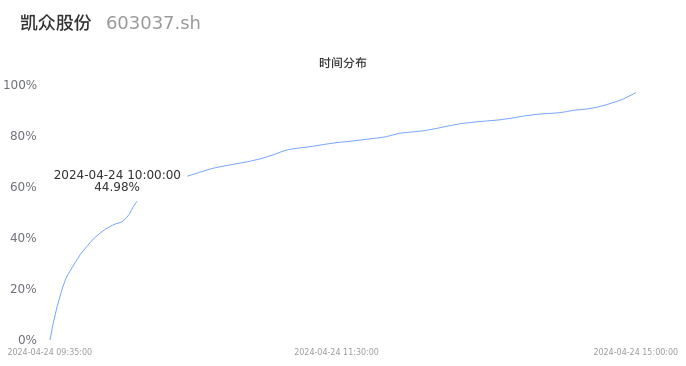 根据成交分布分析,该股票当天放量成交,成交活跃。时间上看,早盘前半小时成交量占据当天总成交量的44.98%;价格上看,成交呈现左偏峰。成交分布分析主要研究股票成交的分布特性,不具有预测功能,请知悉。