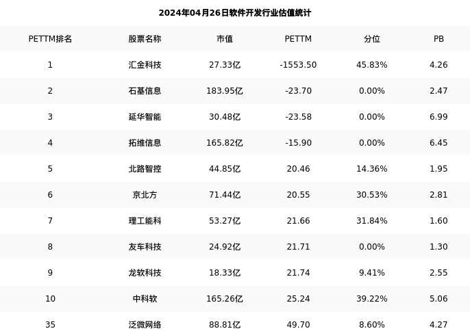 从估值角度看:泛微网络最新市盈率PETTM为49.70,在行业内排名31/132,处于8.60分位。