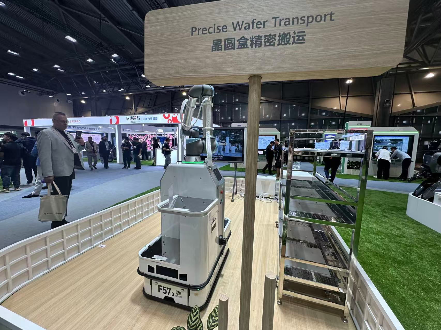 优艾智合机器人展示了晶圆盒的精密搬运。
