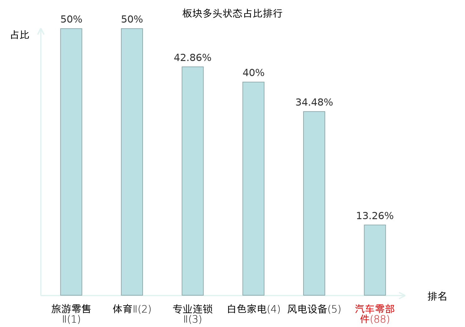 全市场所有行业板块中主力多头状态占比排名中,旅游零售Ⅱ板块位居第一。能源金属板块名次提升最快,较昨日上升50位。