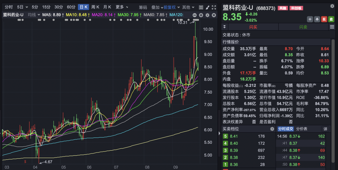 另一家医药公司盟科药业本周接待66家机构,盟科药业是一家以抗生素为主业的公司,周内宣布其控股股东和实控人发生变更。