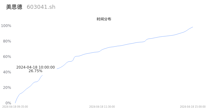 根据成交分布分析,该股票当天缩量成交,成交清淡。时间上看,早盘前半小时成交量占据当天总成交量的26.75%;价格上看,成交呈现中间峰。成交分布分析主要研究股票成交的分布特性,不具有预测功能,请知悉。